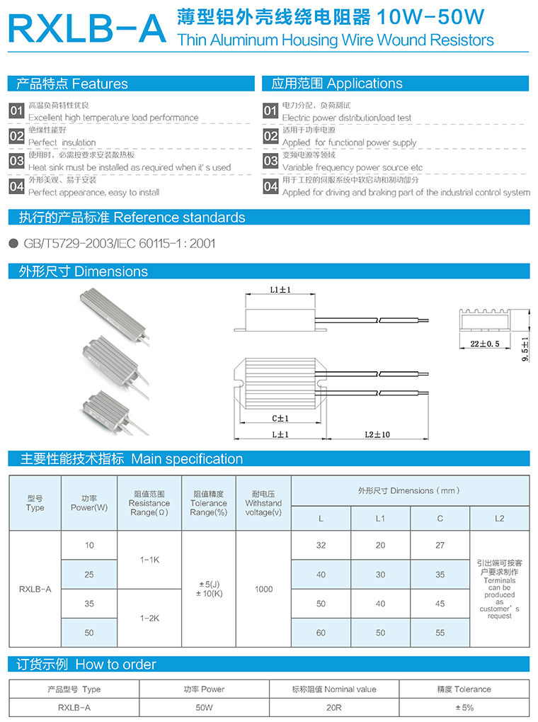 RXLB-A薄型铝外壳线绕电阻器