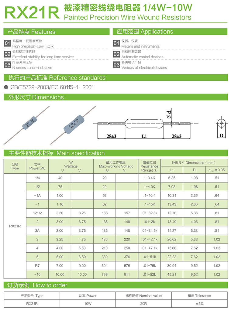 RX21R被漆精密线绕电阻器