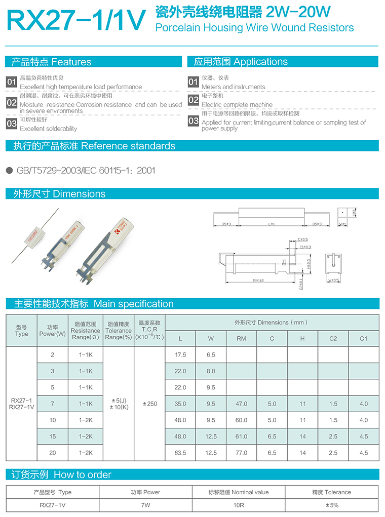 RX27-1/1V型瓷外壳线绕电阻器